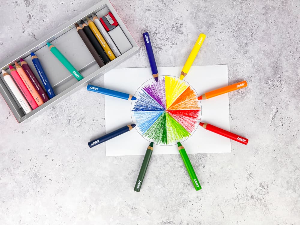 Die Stifte haben einen tollen und sehr satten Farbabrieb, die Mine ist schön weich. Sie lassen sich mit Wasser vermischen und können somit auch für erste „Aquarell-Erfahrungen“ verwendet werden.