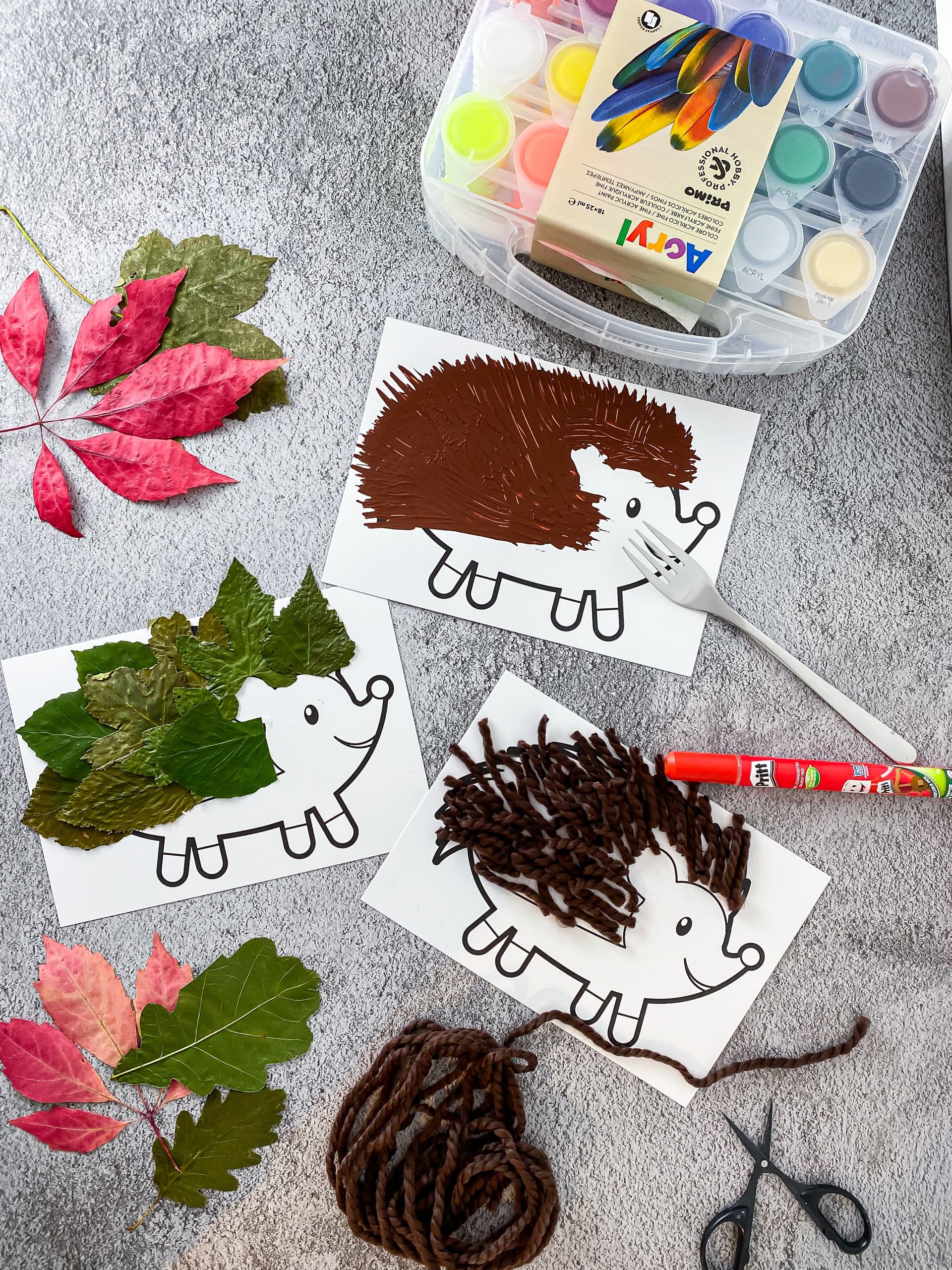 - 5x Igelvorlage auf Karton (für lustige Igel mit verschiedenen Techniken)