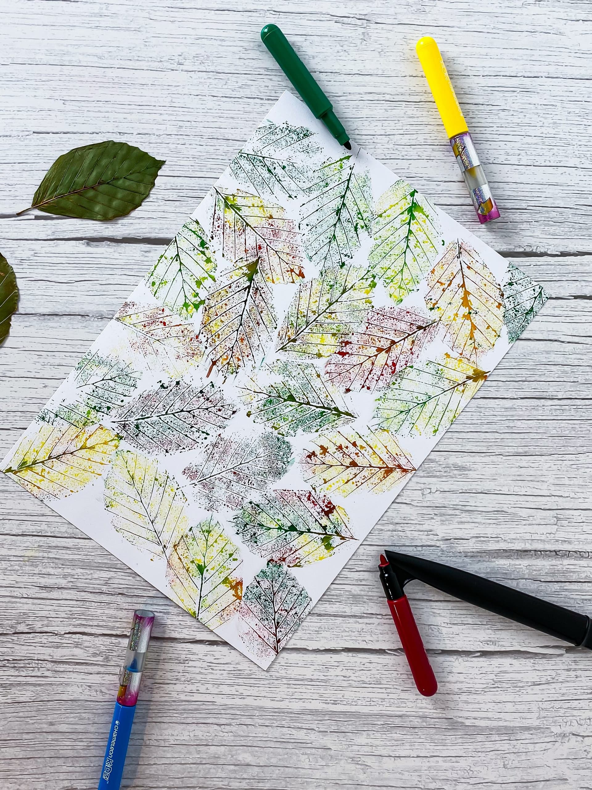 Für dieses DIY braucht ihr die Pustestifte und gepresste Blätter. Nun wird ordentlich Farbe auf die Blätter gepustet (dabei großzügig sein!) und im Anschluss wird das Blatt umgedreht und auf ein weißes Blatt Papier gedrückt. Es entsteht ein toller Abdruck. Wer mag kann die Farben kombinieren und auch mithilfe der Mischkammern tolle Farbverläufe zaubern.