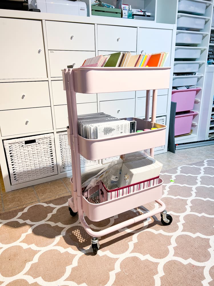 In meinem eigenen Büro habe ich auch einen Bastelwagen, der praktisch ist und gut ausschaut, weil die Materialien gut hineinpassen: