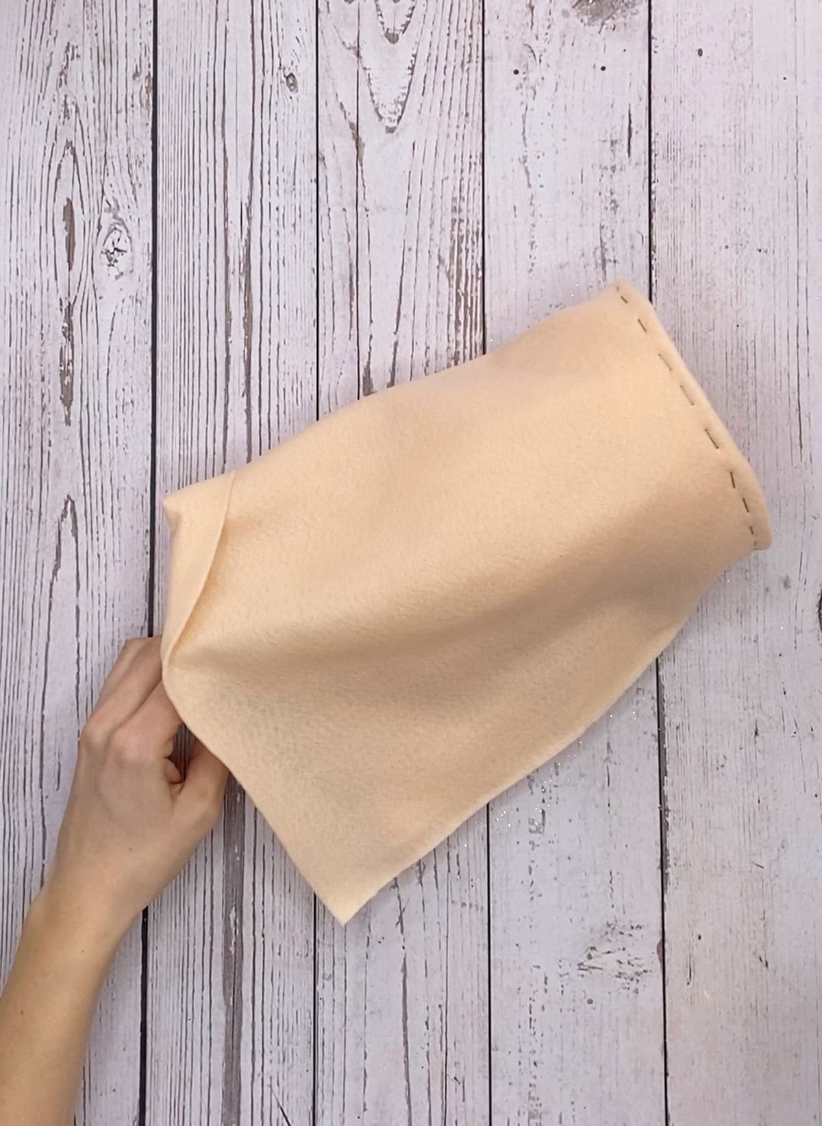 5. Den Abschluss kannst du von außen oder innen befestigen. Das Ende sollte etwas überlappen. Achte darauf, den Filz an der Stelle überlappen zu lassen, an der auch der Papprohling geklebt ist. Das Befestigen von Filz klappt super, wenn man es verkehrt herum von außen antackert und dann nach oben umstülpt.
