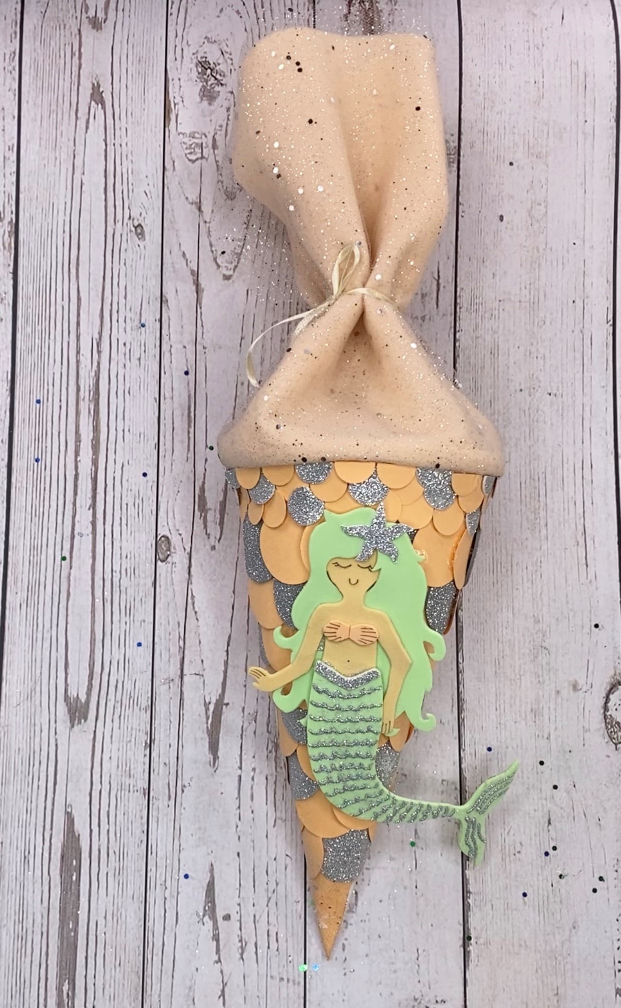Eine Anleitung mit Vorlage für die Meerjungfrauen-Schultüte wird es in Kürze ebenfalls hier auf dem Blog geben. Und auf unserem Instagram-Kanal werden wir ein Video mit euch teilen, in dem ihr seht, wie wir gebastelt haben.