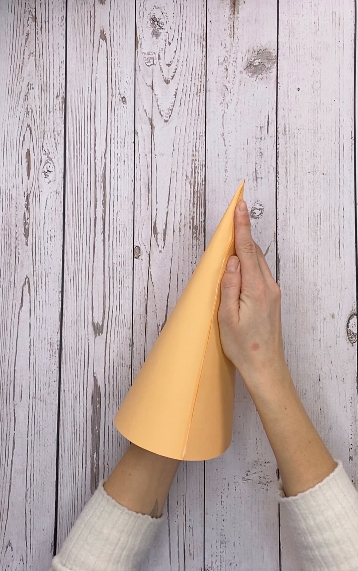 Bevor du Kleber aufträgst, rolle die Tüte einmal vor. Extra Tipp: wenn du die Spitze mit ganz wenig Wasser bestreichst und dieses etwas einwirken lässt, lässt sich das feste Papier besser rollen.