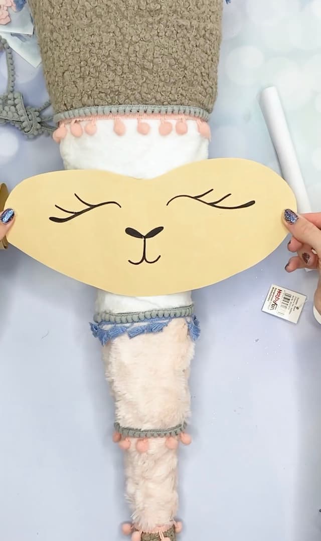 Diese kuschelig weiche Lama Schultüte ist gar nicht so aufwendig, wie sie aussieht. Wir haben sie mit einem Schultüten-Rohling gebastelt, das Plüsch-Fell haben wir bereits in Bänder zurechtgeschnitten gekauft. So wird es einfach drumherum gewickelt und fest geklebt.